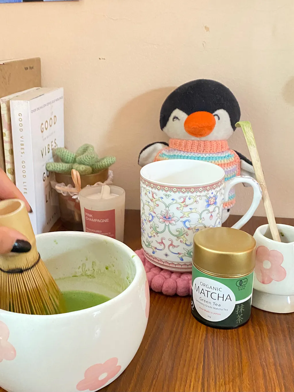 Add a vibrant pop of color to your tea rituals with the Ceramic Matcha Bowl & Whisk Holder – Pink Flower. Made in India by local artisans, this handcrafted set is designed with bold pink flower motifs that bring life and cheer to your matcha moments. The matching painted whisk holder completes the set, making it both functional and beautiful.
